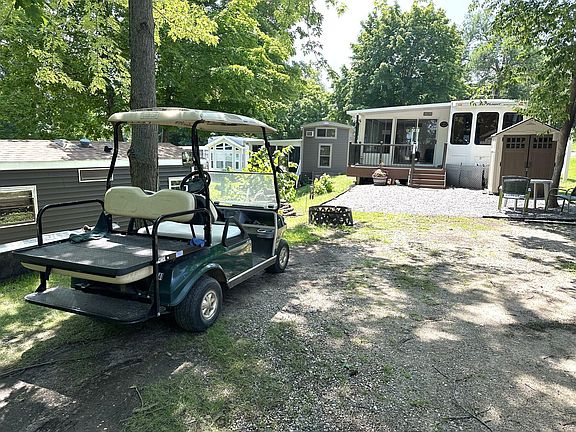 Did you say you just want t go to the lake and relax?...maybe even do some fishing? This could be your place!! 2010 Jayco Flight Bungaloo has 2 bedrooms! Seller added the lakeside porch in 2018 and the lake view is awesome! Seller is leaving most of the furniture, golf cart, and boat lift. Using the golf cart makes it easy to get to your dock, swimming beach, laundry, playground, and to visit the new friends you will acquire! Lobster Lake is known for excellent fishing, even muskies, with ample bays to escape to on those windy days. Association maintains the grounds, has great sandy beach, boat launch, covered picnic area, laundry facility, fish cleaning house, and parking for your boat/trailers. With the extensive 5000’ of shoreline and 24 acres of land, it’s like your own private state park!
