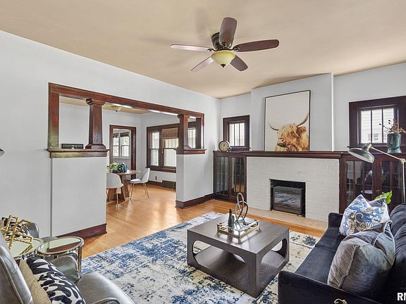 Modern updates with all the charm! Adorable 2-bedroom, 2-bathroom bungalow centrally located near Saint Ambrose University & Vandeveer Park! Beautiful original woodwork, built ins, and hardwood floors. Enclosed front porch leads into an inviting formal living & dining room. Kitchen appliances stay. Walk up attic is spacious and could be used for future finish. Level yard off the back with 2 car garage & alley access. Convenient location near schools, parks, shopping, and interstate access!