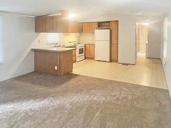 Affordable Comfort in this 3-bedroom, 2-bathroom modular home built in 2002. This move-in-ready home features new carpet throughout, an open floor plan with spacious living areas, a functional kitchen, with All Appliances Included and a tandem carport for added convenience. Plenty of natural light and space, including a walk-in closet and private bathroom in the primary suite. You must be 55+ and must apply for acceptance. Space rent is $600 and includes water and trash.