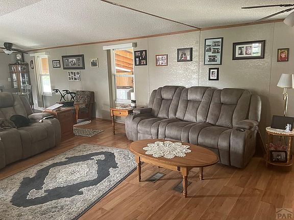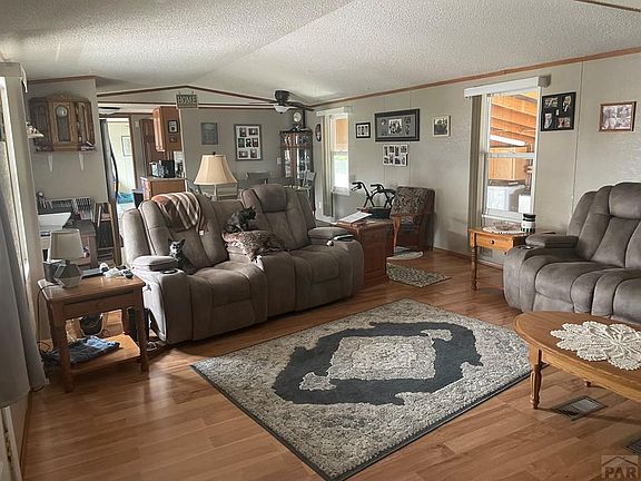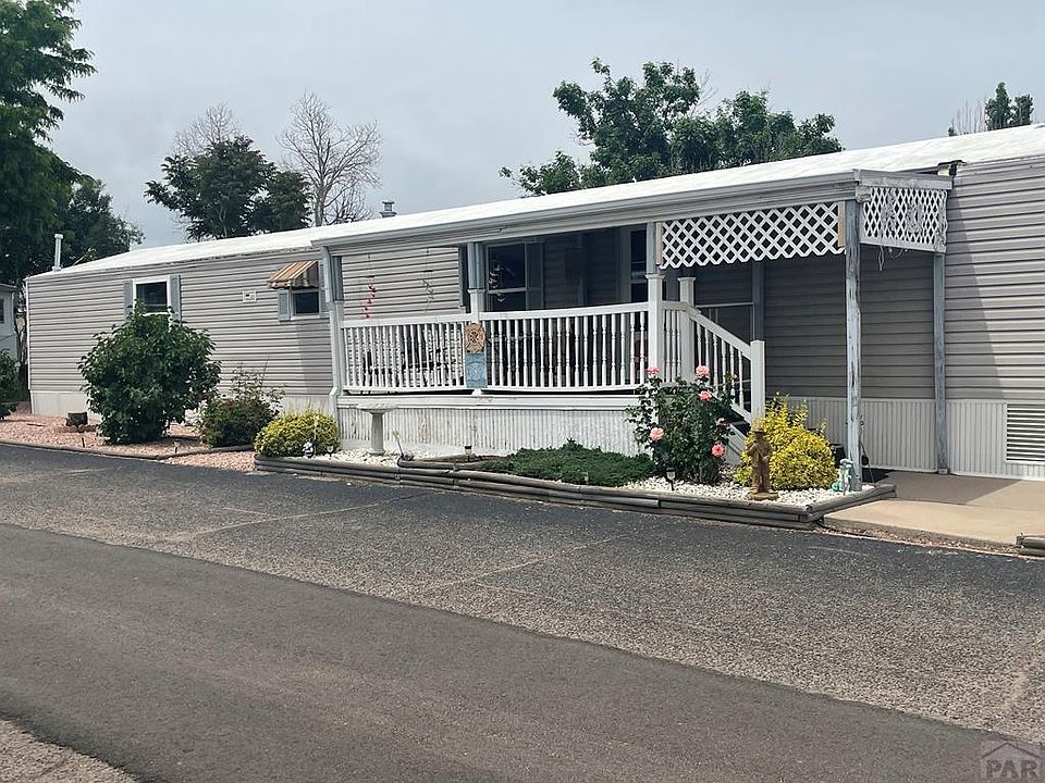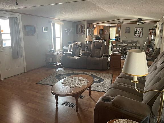 If you are 55 or older and looking for a quite place to live in Pueblo with very little maintenance, look no further! This charming 2 bedroom/2 bath mobile home has a lot to offer! With the open floor plan, when you walk in the door the living room, dining room and kitchen are all open making it look very spacious and inviting. A brand new custom walk-in shower was just installed along with new laminate flooring in the master bedroom. New windows were installed in both bedrooms and in the dining room as well as a new roof in 2022. There is a big walk-in closet in the master bedroom and all rooms have ceiling fans. A drip system is installed in both the front and backyard for watering all your trees, shrubs and flowers. Pets 20lbs or less or allowed as long as they are not of an aggressive breed. The refrigerator and freezer in the carport stay with the home. This home is very clean and move in ready. Call today to schedule a showing!