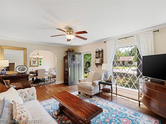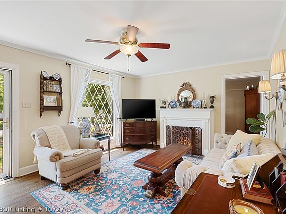 Welcome to this enchanting 1948 one-level charming cottage, nestled in the highly sought-after Park Hill neighborhood of Fort Smith. This delightful residence boasts timeless character and modern upgrades, making it a perfect blend of vintage elegance and contemporary comfort. Revel in the home's original hardwood floors, glass doorknobs, and arched doorways, exuding a sense of historical charm. Enjoy the warmth and ambiance of a beautifully fireplaced living room, perfect for cozy evenings. The home features upgraded vinyl windows with lattice details, ensuring both energy efficiency and aesthetic appeal. Benefit from updated wiring, new light fixtures, and ceiling fans throughout, enhancing both safety and style. Bask in the abundance of natural light that fills every room, creating a cheerful and inviting atmosphere. The kitchen is a chef’s delight, featuring granite countertops, a pantry for extra storage, and ample counter space and cabinetry. The master bedroom boasts an upgraded closet, providing plenty of storage and organization. Step outside to a picturesque backyard, complete with an oversized deck perfect for entertaining. The treelined yard and picket fences add to the home's idyllic setting. Convenient alley access enhances both privacy and accessibility. A 400 sq ft detached entertainment space is a standout feature, equipped with a projector and a 100" movie screen, half bathroom, heating and cooling, and tinted windows—ideal for movie nights or gatherings. Don't miss the opportunity to own this unique and charming home that perfectly balances historical character with modern conveniences. Schedule a showing today and experience the magic of this Park Hill gem for yourself!