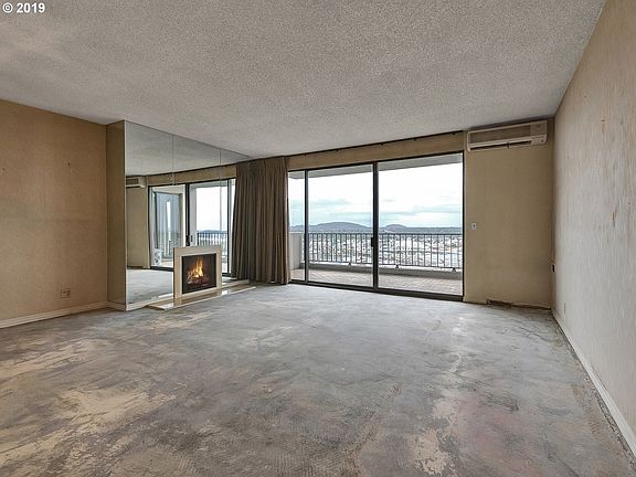 Open Sun. Mt.Hood,city & river views from this 21st floor condo with an open floor plan,gas fireplace, 9 ft. ceilings & huge covered deck. Bring your creative ideas $ sweat equity to make this condo shine. No rental cap. Pet friendly,indoor & outdoor pools,workout rooms,24/7 concierge & security,53 guest parking spaces,on MAX, light rail 1 block away. Stroll the Halprin Park sequence to the downtown cultural district. Fabulous location