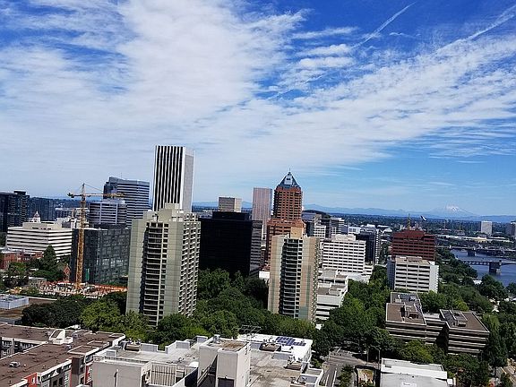 BACK ON THE MARKET - Motivated seller! Lovely American Plaza/Grant Tower Penthouse for sale. Amazing views from the 26th floor: Willamette River, southwest hills, Mt. St. Helens, Mt. Adams. Easy access to downtown, OHSU, South Waterfront, PSU, Streetcar, MAX, Tilikum bridge, Portland Art Museum, dining, shopping. Walk, bike, or take the streetcar to work or play. Unit completely redone in 2006 with new stainless appliances, granite counters, updated lighting, cabinetry, sinks; hardwoods, lots of storage, washer/dryer in unit, new water heater. Unit has 1 covered parking space and 1 storage unit. High ceilings, open floor plan, large outdoor terrace. Complex includes indoor swimming pool, outdoor swimming pool, fitness center, Lee Kelly sculpture garden, visitor parking, community center, concierge. For sale by owner. Please, no listing solicitations. Call, text or email 503.890.7027, meg.mccauley@comcast.net.
