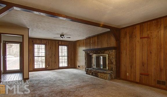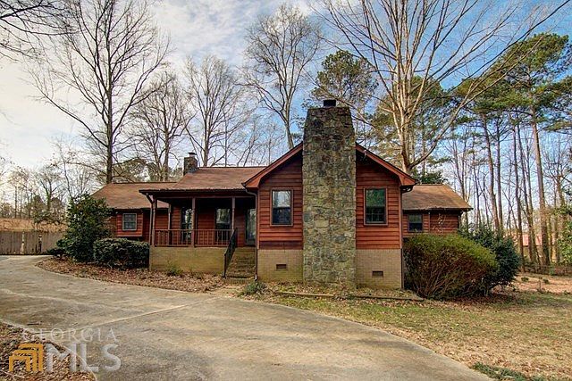 Huge home for the money-Located in Salem Village, you have easy access to I-20, shopping and restaurants-Home features 2 master suites, one on main level and one upstairs-wood paneled library/office with fireplace-family room with fireplace-sunroom-eat in kitchen-laundry room-full unfinished basement with finished full bath. Over an acre of land in cul-de-sac-Bridge over creek-outbuilding. This home has a ton of potential!