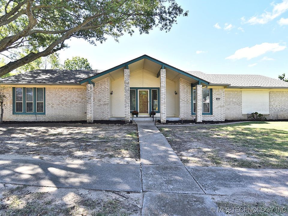 A must see! Well-maintained, full brick one-story, features side entry, over-sized garage, new roof 2023, in Wolf Creek Estates! 3 bedrooms with walk-ins, 2 full baths provide lots of space. Large vaulted living with fireplace, home office off entry. It has a large kitchen, dining nook plenty of cabinets and two pantries. Covered patio, privacy fenced. Perfect location - near churches, schools, shopping and Creek Turnpike for easy access to work and entertainment. 5 minutes to Broken Arrow's Rose District.