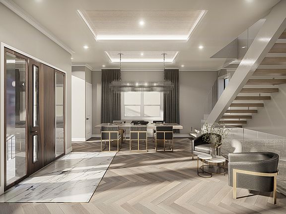 Located on a double lot on Huron Street in West Town, this 6 bed/4.5 bath single-family new build flaunts first-class architecture and innovative design. The modern exterior features a brick veneer accented by stone panels, oversized Pella windows, a large front door with glass transoms and four seasons landscaping. Inside, the main level's floor plan has been optimized for elevated entertaining. White oak herringbone floors flow throughout, connecting an elegant foyer space to a large living room with fireplace, a dining room, and a stunning chef's kitchen with custom cabinetry, quartzite countertops, Sub-Zero/Wolf/Miele appliances, a walk-in pantry, a massive island and the option for a breakfast nook. At the back of the house, an open-concept family room with a fireplace links to a back deck with Trex composite decking and side-yard, a 4-car garage and a garage deck. The home's second level, accessed via a beautiful floating staircase, has 4 bedrooms and a laundry room, including a striking primary suite with a custom walk-in closet, private balcony and an ensuite bath. The spa-like, primary bath boasts a dual vanity, heated porcelain tile floors, a standalone soaking tub and a glass-encased shower. The top floor is entirely devoted to the home's third outdoor space: an epic finished roof deck with outdoor kitchen, firepit, and skyline views. This home also comes complete with a fully finished basement featuring a large rec room, a bar, a climate-controlled wine cellar, a second laundry room and two guest bedrooms. Generous allowances are included for a range of homeowner specifications, including powder-coated exterior fencing and railings, an elevator, custom millwork, sophisticated lighting, an 8-camera security system, embedded speakers and smart home automation. Located within walking distance to Smith Park, Superior Playground Park, Mitchell School, and the charming shops/restaurants along Chicago and Damen Avenues. 2221 W. Huron St. is a flawless forever home with convenience and cachet. (Completion is set for one year after an agreement is reached. Sales office is located at the Jameson Sotheby's offices in Lincoln Park at 425 W. North Ave.)