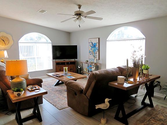 SALE PENDING! This great TWO Bedroom, TWO Bath home has great features...inviting front porch, open floor plan, HUGE living room, separate laundry room, walk-in closet in the primary suite and a wonderful screened porch on the back to enjoy all the privacy. Freshly painted, some furniture stays. Includes the golf cart.