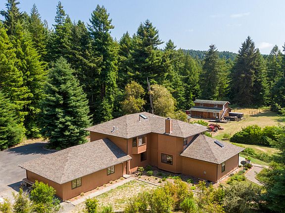 Why not live in a slice of heaven near magnificent beaches and breathtaking trails through towering redwoods? Solitude, Peace and privacy on 10 acres within 15 minutes of Eureka. Escape the extreme temperatures and enjoy less fog in this wonderful micro-climate. Mature Redwood groves (over 100,000 b/f of timber), park-like pastures, ancient hollow redwood stumps and fern-studded trails...explore and have adventures on your own property! Grow anything (no lack of water), room for animals and be delighted by the bountiful wildlife! 2000s/f barn with 3 stalls, workshop, tack/storage room and 2nd story open 16 x 40 loft/workspace. Lots of open ground for a 2nd home or ADU, huge shop and parking for RV's or heavy equipment. The Southern exposure makes this the perfect Humboldt Co. property! This spacious, contemporary 5 bedroom, 3 bath home has a downstairs bedroom with a convenient private door to a full bathroom. Skylights/windows supply relaxing views and abundant natural light throughout. The kitchen, open to the family room, has ample custom, red birch cabinets with granite counters. Other features include solid interior fir doors, real White Oak flooring, large bedrooms and separate upstairs laundry room.