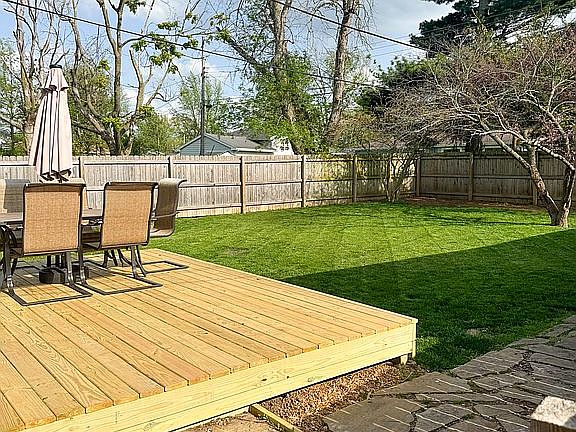 Welcome to 2221 Yorkshire Drive — a move-in-ready gem that blends cozy charm with thoughtful updates! With just under 1000 square feet of comfortable living space, this home offers 2 great bedrooms with 1 full bath and a large living room complete with beautiful hardwood floors. A full, unfinished basement is a blank slate with much potential that boasts plenty of room for storage, entertaining, or additional bedrooms. Detached two car garage and fenced yard are sure to impress! An area that can be used as a dining room, office, or sitting room with a sliding door leads to the brand-new deck built in April 2025 in the backyard. Other recent updates include a new roof on the house and garage in the fall of 2024, remodeled bedrooms with fresh paint, carpet, and trim, and several new appliances within the last year. This turnkey property is located in a quiet neighborhood and conveniently close to parks, shopping, and amenities!
