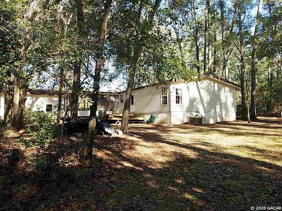 Back to nature and privacy on wooded 5.63 acres! A nice walking path to the back of the property and open area. Lots of potential. 1990 Doublewide, 1500 SF, 3 BDR/2BATH, Large living room, Dining room, Eat-in Kitchen. Shingle roof approximately 10 years old, 2 car detached garage with workshop, power & concrete floor. Garage was built to park a Fifth Wheel. Features Double Pained Windows, large closets, Wood burning fireplace. Convenient location to I-75, Gainesville or Lake City.