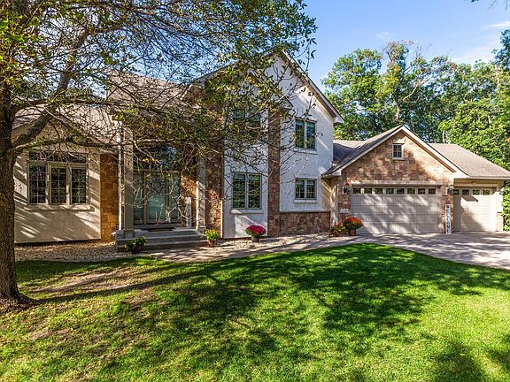 Executive Home in secluded Ridges of Rice Lake! This beautiful estate is set back into the woods for tranquility w/ Nature. Deer literally eat right off your hand! Tastefully design features tall ceilings w/a bright, open Floor Plan. Vast kitchen includes Ctr Island w/one-of-a-kind stone imported from Italy. Master Ste w/ trey vault ceiling, private BA, separate jacuzzi tub & shower, dual bowl vanity, W/I Closet & lovely nature views. LL W/O is an ideal entertaining space w/wet bar, gas FP, Lrg family rm, 2 BD's plus fitness rm/den. Garage is finished & heated to keep you nice n warm all year long. Enjoy a dip in the SALT WATER PRIVATE POOL w/ spacious patio great for outdoor fun or sit back and have coffee on your quiet deck as you stare off into the wild. Miles of nature trails behind the homes and off street throughout this community! Great for Cross Country Skiing. PLUS ICE RINK w/ LIGHTS & WARMING HOUSE! AND FIREPIT & GAZEEBO.