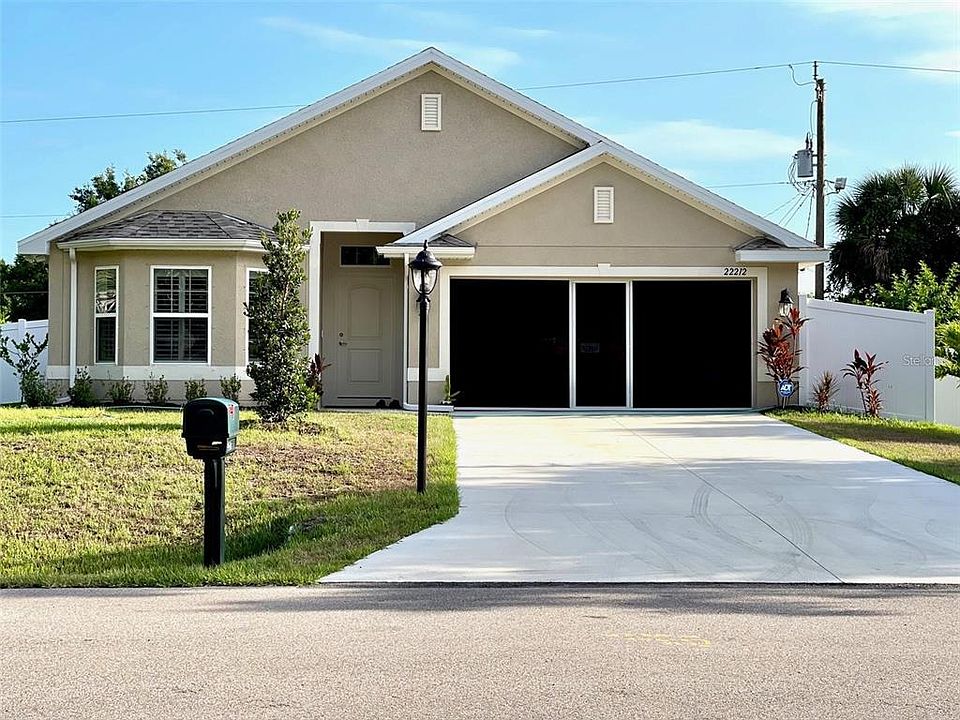 IMPRESSIVE 3 Bedroom, 2 Bathroom POOL HOME with attached 2 Car Garage built by Adams Homes. Located in a quiet community yet close to all amenities. NOT in a flood zone and NO HOA. This home built in 2019 features an open and split bedroom floor plan with Great Room, Dining Area, well appointed Kitchen and Inside Laundry. The Kitchen features wood cabinets, stainless appliances and breakfast bar. The Master Bedroom suite offers a walk in closet and private bathroom with tub, dual sinks and walk in shower. There are two additional bedrooms, one is currently being used as an office. The guest bathroom features a tub/shower combo. Your living space extends via French doors to the covered patio and heated inground pool. Other features include vaulted ceilings, rain gutters, pebble tech pool finish, paver pool deck, surge protectors, UV light for HVAC, garage screen, privacy fence in the backyard, plantation shutters, neutral colors. Minutes from shopping, dining, entertainment, medical care, Charlotte Sports Park, US 41, waterfront parks, boat ramps and fishing piers. Easy drive to world class fishing on Boca Grande and gorgeous Gulf beaches in Englewood. This home won't last long on the market!