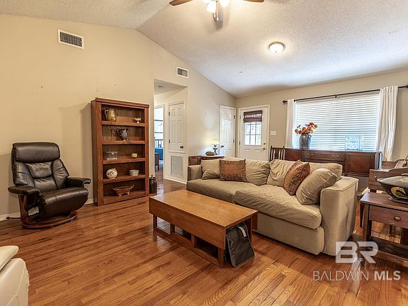 This is a Coming Soon Listing - Expected on the Market 11/18/2025 . This inviting home sits on a large, beautifully landscaped lot close to parks and downtown Silverhill. The backyard is fully fenced and features a covered deck for relaxing or entertaining. Inside, enjoy hardwood floors throughout, a cozy A-frame living and dining area, a bright sunroom filled with natural light, and a durable metal roof. The kitchen offers granite countertops, and all appliances convey, including the refrigerator, washer, and dryer. Take in the peaceful views of your private, mature backyard from the covered porch with an extended deck. A detached storage building adds extra convenience. Whether you're searching for a starter home, a retirement retreat, or a solid investment property, this one is a wonderful find! Buyer to verify all information during due diligence.