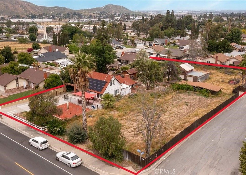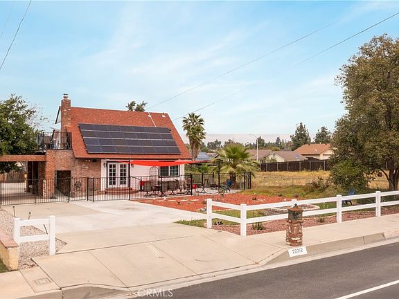 Welcome to your spacious sanctuary in the heart of Grand Terrace! This updated, charming, 3 bedroom / 2 bathroom / 1,690 sq.ft. classic farmhouse sits on an ACRE corner lot, allowing your imagination to run wild with what to do with so much space! The possibilities are endless, including adding an ADU for potential residential income, or the option to subdivide the lot. Currently, the large property offers an oversized 1,500 sq.ft. garage structure, “she-shed”, toolshed, and an animal coop. Cook up a storm in your newly renovated kitchen space (newer stainless steel appliances included!) that opens up to the family room and fireplace. Downstairs enjoy the primary bedroom, full bath, while upstairs has two guest rooms - one with a balcony. This property not only offers endless possibilities with potential and privacy, but helps save on your electric bill with PAID OFF SOLAR panels. The home has recently been updated with new AC and heating as well! Conveniently located near the high school, shopping, and freeway access. Whether you’re looking for an investment opportunity, or the perfect property to call your “forever-home”, 22212 Pico Street is not one to miss!