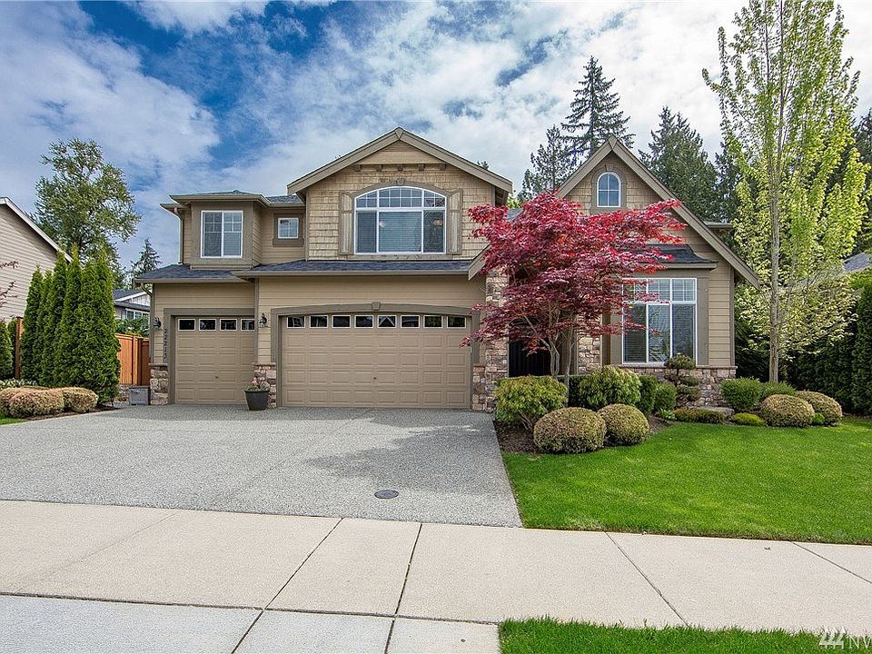 Immaculate Crown Woods resale set on rare 10,000 sq ft lot backing to protected greenbelt! Gleaming hardwoods, vaulted ceilings, main floor den, family rm w/stone fireplace. Slab granite counters, ss appliances, walk-in pantry, island & nook. Serene spa-like master suite, large bonus room. Enjoy entertaining & BBQs from expansive patio, very private fenced yard. Large 3-car garage w/storage, AC, sprinkler system, Northshore schools, close to Hwy & I-405 - this home as it all!
