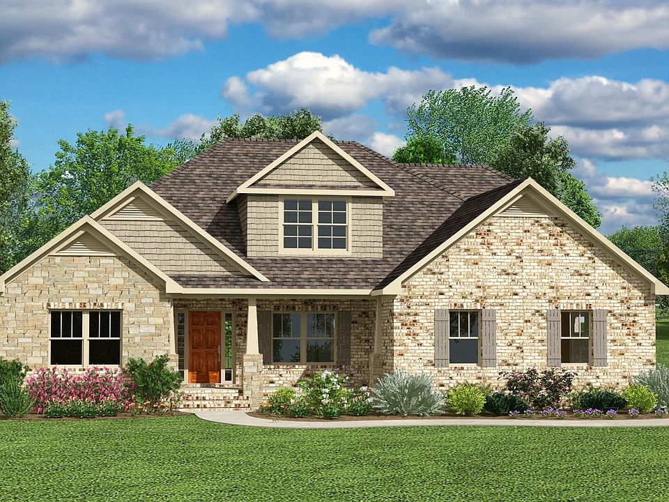 The Revere" floor plan is currently under construction and is expected to be completed in October 2024. This spacious house features 5 bedrooms and 3.5 bathrooms, with a large bonus room on the second floor. The master bedroom is isolated and comes with a glamour bath, which includes a larger vanity with double sinks, a separate tub and shower, and a walk-in closet. The family room is also spacious and has an open kitchen layout that is perfect for hosting guests. Additionally, there is a large study that would be great for home office.