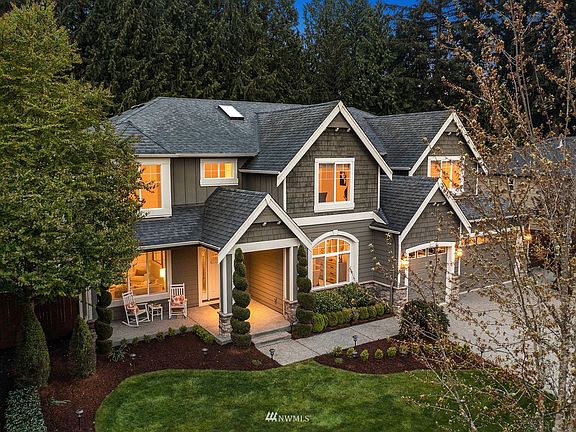 Rare opportunity to live in the highly coveted Crown Woods. Impeccably maintained, soaring 18' ceilings with transom windows drenching rooms with natural lighting. High-end finishes, such as pristine flooring, marble & granite surfaces, birch cabinets, walk-in pantry. Large bonus room on main with french doors opening to patio & hot tub, could easily be transformed into a bedroom with a 3/4 bath. Spacious primary bedroom, 5-piece bath & dual closets. Fire sprinklers. A/C, NW style covered glass Trex deck with Outdoor speakers, plumbed for gas BBQ - fire table, extends the back of the home on a tranquil 1/4 acre greenbelt lot. Park your smart car in the 3 car garage with a Tesla charger. Walk to Northshore schools, trails, parks & amenities.