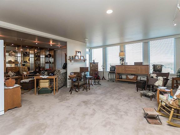 Amazing ninth floor views await at this rare 1580 sq ft Blair House condo!! Unique updated lighting, huge family room, large kitchen with ample storage space including a wall of mirrored cabinets, master suite with full bath and remodeled 1/2 bath. This unit could easily be converted back to a three bedroom. 2 patio areas. Some of the wonderful amenities include a secure entrance, great for entertaining community center, exercise room, newer commercial washers and dryers, in-ground pool and heated parking!