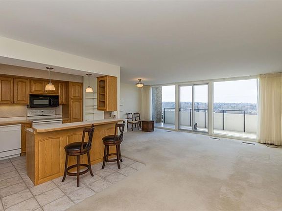 Watch the seasons change from the 9th floor Amazing views of 1st Ave and downtown. Enjoy your special seat for fireworks on the 4th from both balconies. This open floor plan condo has a breakfast bar and oak kitchen cabinets. The master is huge with attached bath and large closet. Gorgeous in ground pool, community room for entertaining, remodeled exercise room, laundry in lower level, secure entrance, full time maintenance person. Heating, cooling, water, recycling/garbage, common area maintenance, snow removal and lawn care included in the monthly association dues along with use of the pool, workout room, laundry and huge party room. $150 move in fee. $350 refundable moving damage deposit