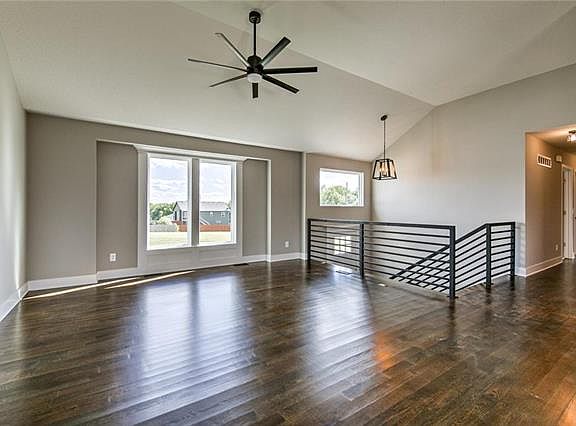Amazing new home with a touch of farmhouse industrial look. Custom made black industrial stair railing inside & out. Great home for entertaining, open floor plan w/vaulted ceiling, hardwood floors, industrial lighting/ceiling fan, lots windows for natural daylight. Chef of the house will love the upgraded slide in gas stove, granite island & large pantry.