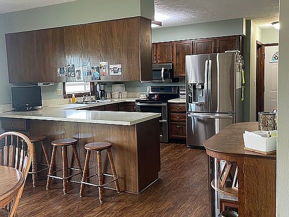 Very well kept, all electric, ranch style home with 4 bedrooms, 1 and half baths kitchen with Oak cabinets, Stainless steel appliances, main floor laundry room, new windows/patio door, wood laminate flooring & updated bathroom. Under ground sprinklers on its own well, 12x10 utility shed, 16x20 wood deck, swing set, beautiful landscaped, 2 new garage doors & opener’s attached to the house sitting on a large corner lot. Not in the flood plain, 1 block to the park 4 blocks away from elementary school. Quiet neighborhood.