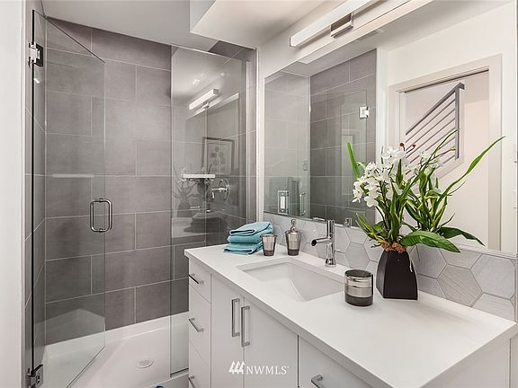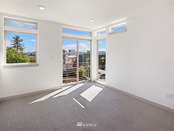 Beautifully designed new construction corner home by MRN Homes in prime Ballard location. Featuring top to bottom premium finishes, ample natural light from walls of windows, gourmet kitchen w/ marvelous quartz counter tops, SS appliances, & gleaming hardwood floors. HUGE top floor master suite with luxurious 5-piece spa like bath including soaking tub and large walk-in closet. Magnificent roof top deck. Off street reserved parking space included. 4 Star Built Green. Incredible WalkScore of 89!