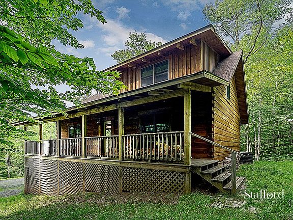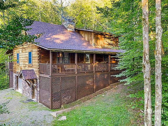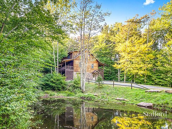 Will pay 3% commission to buyers agent. Gorgeous authentic Log Cabin in Old Timberline. Warmly furnished and decorated private 3016 sq. ft. log home with beautiful wood work and all the amenities you would expect. The retreat is located in a serene and private setting in the gated Timberline community, complete with a personal pond and mountain stream. The home features central heating and air conditioning, high speed internet with Wi-Fi, three bedrooms, loft and rec room to comfortably sleep eleven to fifteen, kitchen, full size washer/dryer, three full and one half-bath. A large front porch with a forest view and porch swing, a large back deck with views of the forest, stream & waterfall that flows into a personal pond, all on three levels including a one car garage. The first level is the main basement entry level with large mud room and full size washer and dryer, a rec room and a small but full bathroom with shower. The second level is the main floor which includes a spacious master suite with a full ensuite bath with claw foot tub and walk in shower. The family room is cozy with a soaring ceiling that is open to the loft and staircase leading to the third floor. The entire main floor wraps around a gorgeous show stopping stone wood-burning fireplace. The dining area is open to the family room with a french door leading to the large covered back porch overlooking pond & streams. The kitchen is fully equipped with custom granite, gas stove, whirlpool and thermador appliances, and huge farm sink with copper faucet. The third level features a large loft, the second bedroom and third bedroom and another full-bath with shower. Main Level: Kitchen, Family Room, Dining, Master Bedroom (King), 1 Full Bathroom, 1 Half Bathroom Second Level: Bedroom 2 (Queen and Twin), Bedroom 3 (Queen and Queen), Loft (4 Twins), 1 Full Bathroom Walkout Basement: Rec Room (2 Twins), 1 Full Bathroom, Laundry, Mud Room