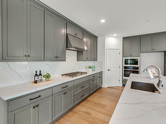 * Fully upgraded kitchen, highlighted by a dramatic waterfall island, premium soft-close cabinetry, stainless steel appliances, and a 5-burner cooktop.