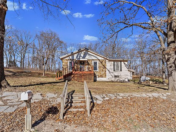 Charming stone exterior home set on 4.62 peaceful acres, offering the perfect blend of character and country living. Step inside to large open-beam cathedral ceilings in the kitchen and dining area, creating a warm and welcoming space for gatherings and entertaining. Home features 3 spacious bedrooms and 1 and 1/2 bathrooms. Charming features are found throughout this very loved home. Outdoors, enjoy room to roam with a detached two-car garage, large machine shed, chicken coop, and an outdoor wood-burning furnace--ideal for hobbyists, homesteaders, or those seeking a self-sufficient lifestyle. A truly special property with endless possibilities!
