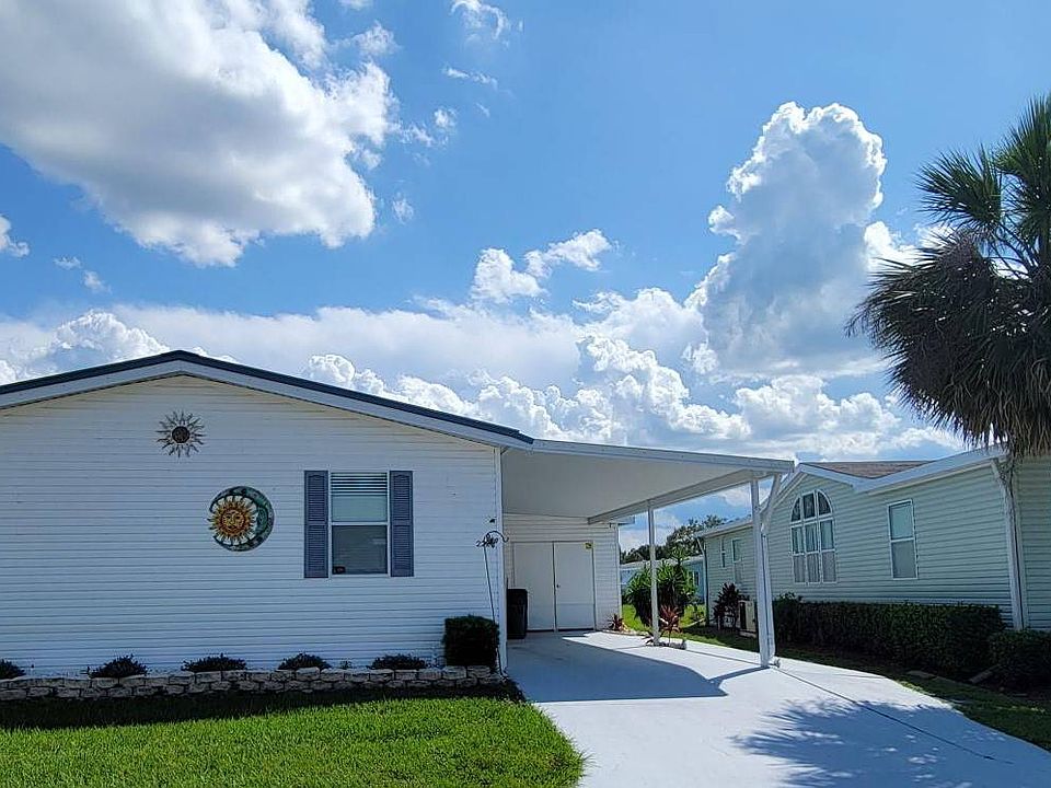This charming 2003, 3/2 with 1,344 square feet has been remodeled from top to bottom. The home features an open and split floor plan with laminate flooring throughout and ceramic tile flooring in the kitchen and bathrooms. The kitchen cabinets were recently painted, while the counter tops, garden tub and bathroom counters have all been resurfaced. The kitchen has newer appliances and a nice tile backsplash. The main living areas have textured walls. The master bedroom has a walk-in closet, and the master bath has a garden tub and a stunning oversized, pebble tiled shower. This home has easy access for those with mobility issues and is priced to sell! The carport was recently painted and there's a separate golf cart path. A new metal roof and AC unit were installed in 2018 & 2017 so there's nothing to do in this home. The sellers are anxious to make a deal on this move-in ready home which is conveniently located near the entrance to the community. The home is on leased land where monthly fees range from $900 and up (excluding Ad Valorem tax and garbage service) and is offered partially furnished for $149,500.00 and available for immediate occupancy. Why not start living your best life in this care-free, premier, resort-style community which has everything you could want. Fees include the use of two pools, two hot tubs, a fitness center, tennis courts, bocce ball courts, pickleball, horseshoes and access to the clubhouse for countless indoor and outdoor activities. The community also has an onsite bar & grill which features daily food and drink specials and provides monthly entertainment. Lawn mowing, biweekly trash pickup and a 24-Hour manned guard gate are also included. This premier resort style community is located on 1,000 luscious acres with plenty of wildlife and located close to Tampa and Orlando in a 55+ MH community with two golf courses. Both the North Course and the Championship South Course are 18-hole golf courses where residents may purchase a golf membership or a "pay as you play membership".