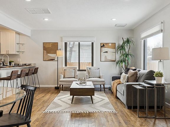 Welcome home to this fully light and bright renovated ranch located in Aurora’s New England Heights neighborhood, just minutes from both Stapleton and Fitzsimons Campus. 222 Galena Street features beautiful hardwood floors, an open-concept floorplan, all-new light fixtures, and curated finishes throughout. The heart of the home is the well-appointed kitchen boasting a large peninsula with bar seating, granite counters, beige shaker cabinetry, and a stainless steel appliance package. Two large bedrooms and a fully renovated bathroom are located on the main level, along with two secondary bedrooms and another remodeled bathroom in the finished basement. Movie nights or catching the big game is ideal in the basement den. Come summer, entertaining guests on the large paver patio overlooking a spacious backyard with low-maintenance landscaping, mature trees, and a bonus shed for all your tools and toys. Additional features of this turn-key property include a newer roof, added insulation for home efficiency, a new water heater, a replaced sewer line, and a detached garage. 222 Galena Street is ideally situated within minutes of shopping, dining, public transportation, parks, and major roadways. This property will not last long so book your showing today!