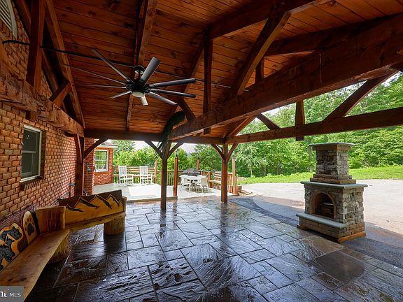 Welcome to your dream outdoor oasis! This magnificent 4-bed 3-bath custom-built brick ranch home is nestled on nearly 2.5 acres of lush wooded land, offering a haven for nature enthusiasts or those seeking a farmette. Experience stunning views of the surrounding countryside. Enjoy one-floor living in a home with craftsmanship and attention to detail throughout. You will love the gorgeous newer hardwood floors and natural wood accents. The kitchen has high-quality stainless steel appliances and a breakfast bar. The main floor also includes a family room, formal dining area, and laundry room. Retreat to the primary bedroom with a massive walk-in closet. The primary bath features a luxurious jacuzzi tub. There are three additional bedrooms, two of which include large walk-in closets. Spacious walk-out basement with a full bath and propane fireplace with stone surround. Open the french doors off the main level and relax or entertain on the deck and outdoor patio covered by a large pavilion, with an exquisite stone fireplace. The backyard has a fire pit where you can sit and soak in the views, and a small pond that adds to the charm and tranquility. The large 2-car garage provides ample parking and storage. Additionally, a pole building with electricity and an oversized garage bay offers abundant space for your vehicles, equipment, and storage needs. Plenty of parking for RVs, trailers, and more. Enjoy a self-sustainable lifestyle with the fenced areas designed for small livestock and poultry. Don’t miss this extraordinary opportunity to own a private wooded oasis that combines outdoor beauty, comfort, and practicality. Call to schedule a tour today!