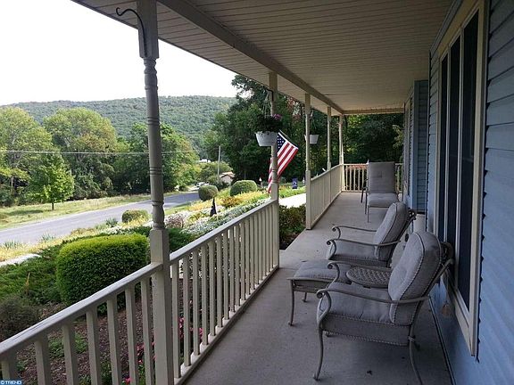 Large well built custom 2 level home with 1st floor main bedroom suite. This home is situated on a partially wooded country 1.15 acre lot, only minutes to Route 222 & 12. Enjoy the captivating natural mountain view from the wrap around front porch. Have hobbies but no room to store you toys? Check out the detached 36 x 28 pole barn. This home also includes a 2 car attached garage. The roomy interior includes a custom oak kitchen featuring center island with rounded counter overhang, cookbook shelf, plentiful cabinets in all directions and a large pantry storage closet. The adjoining 5 angled breakfast nook is a pleasant unique feature of this home. It also overlooks the private rear yard and includes a patio door. The sunken family room features an impressive floor to ceiling authentic stone wood burning fireplace. Large main bedroom suite includes a full bath with Jacuzzi tub, oversized shower, vaulted ceilings, and a walk-in & single closet. Open 2 story foyer is enhanced by hardwood floors, a stained wood staircase with double bullnose railings and a 2nd floor balcony hallway. Living and dining rooms are complemented by a large 3 bay window with views of the natural setting. The 2nd floor includes 2 very large bedrooms with full bath, and an attic storage area which may have potential to be a finished 4th bedroom. The large 1st floor laundry/mudroom has closet storage and doors leading to the garage, front and rear of the home. This home is well insulated making it efficient to heat and cool. Take the time to visit this home, you won't be disappointed!