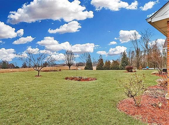 Curb appeal galore w/ this stunning custom built 4 sided brick/stone, 3 bed/2 bath home on .41 acres lot. Upgraded features such as arched doorways, floor-to-ceiling brick gas FP w/ stone hearth, wood floors, & vaulted ceilings, split bedroom floor plan. Kitchen boasts granite counters, custom staggered cabinets, tile floors & backsplash, stainless appliances, & oversized pantry. Master suite offers spacious bedroom w/ 2 walk-in closets, & access to master bath w/ exquisite slate tile flooring, jetted tub, double bowl vanity w/ lower light accents, and impressive walk-in slate tile surround shower w/ multiple shower heads. Finished basement features spacious family room w/ fireplace (not setup) & bonus room. 2 car attached garage has Fire Chief wood stove that can heat home (separate thermostat inside house). Covered patio complete w/ ceiling fans to enjoy the peaceful country views. Calling all anglers..You'll love fishing in the neighborhood lake!! SAFB & STL are less than 30 miles!