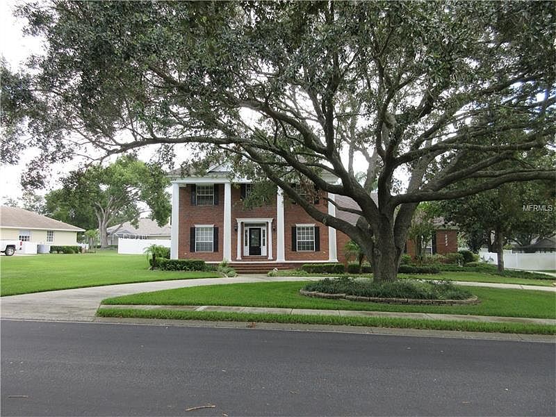 MAGNIFICENT, 2 STORY COLONIAL WITH SOARING PILLARS. THIS POOL HOME HAS A 3 CAR GARAGE, PVC FENCED YARD AND A CIRCULAR DRIVE. FROM THE ENTRANCE OF THIS HOME, YOU WILL BE AMAZED AT THE 20ft CEILING IN THE FOYER WITH CHANDELIER TO THE BEAUTIFUL HARD WOOD FLOORS. THE STEP DOWN LIVING ROOM AND DINING ROOM ALSO HAVE HARDWOOD FLOORS. A WOODBURNING FIREPLACE IS 2 SIDED WITH EXPOSURE IN THE DINING ROOM AS WELL AS THE FAMILY ROOM WHERE IT IS FLANKED BY BUILT IN BOOKCASES. ALSO ON THE MAIN FLOOR IS A FAMILY OFFICE CLOSED OFF FROM LIVING ROOM AND FAMILY ROOM BY FRENCH DOORS AND A 1/2 BATH. A WINDING STAIRCASE FROM THE SECOND STORY IS A SHOWPIECE IN THE FAMILY ROOM. LARGE KITCHEN HAS AMPLE STORAGE, GLASS DOOR ON SOME CABINTES AND BEAUTIFUL GRANITE COUNTERTOPS. THE MASTER ENSUITE IS COMPLETE WITH DUAL WALK IN CLOSETS, A GARDEN TUB, DUAL VANITIES AND LARGE TILED SHOWER. BEDROOMS 2,3 AND 4 ARE ON THE SECOND FLOOR WITH A BONUS ROOM THAT COULD BE A 5TH BEDROOM, REC ROOM OR PRIVATE STUDY. 2ND STORY HAS 2 FULL BATHS. THERE IS A 1/2 BATH OFF THE POOL AND A SCREENED ENCLOSED LANAI. ALL OF THIS ON A .6 ACRE LOT! CALL TODAY FOR AN APPOINTMENT.