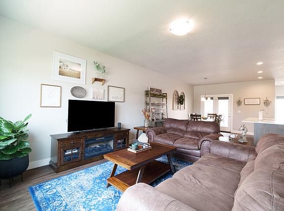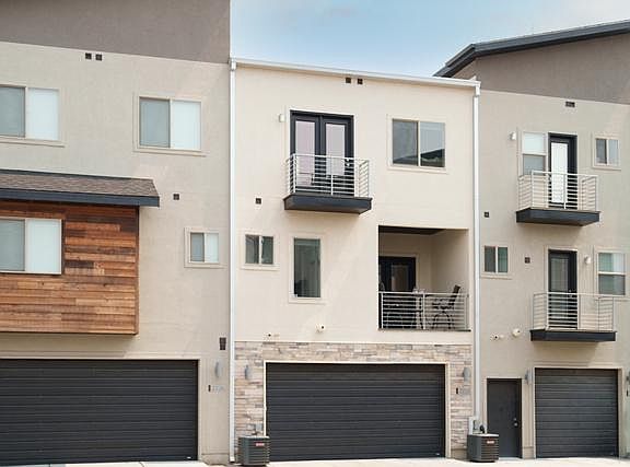 Contemporary UPGRADED Finishes, UNOBSTRUCTED Mountain Views, Convenient LOCATION! Energy efficient, OPEN CONCEPT 3 bedroom 2.5 bath townhome with 9 foot ceilings on all 3 levels. Inviting East-side patio welcomes you to this lovely property. Inside ground level, spacious, finished family room, which could be used as bedroom, office or gym; garage access and storage space. Upstairs bright second family room and entertainer's kitchen, boasting custom shaker style cabinets with upgraded hardware, large stone island bar and SS appliances (refrigerator included); powder room and laundry. Upstairs owner's suite is supersized, with walk in closet, grand bath and balcony; also 2 additional bedrooms. Bathrooms have custom cabinets, stone countertops, gorgeous tile floors and tile showers. Upgraded doorknobs and hardware. Walk to schools, restaurants, shopping and Hill Air Force Base. The community offers a playground, bbq area and pickle-ball courts. High Efficiency 95% furnace, larger 3 ton A/C condensers. Tankless Water Heater, low E argon gas filled windows, extra Sound Board in fire wall between units, 2x6 exterior walls, R23 insulation in walls, R26 in shared walls, R38 in attic. CALL TODAY! Make this YOUR DREAM HOME!
