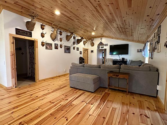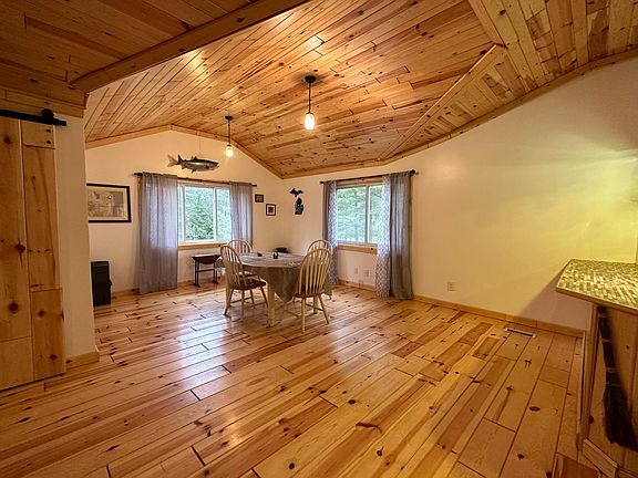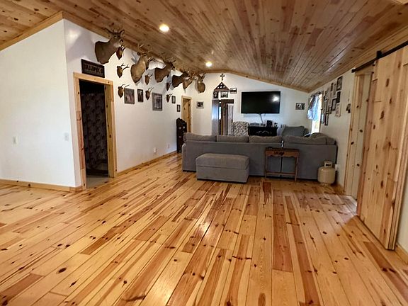 Perched on a hill, this adorable, updated 3 bedroom is situated on over 6 wooded acres! The home features stunning pine floors, Tongue and Groove ceilings, and an open floor plan! The indoor wood furnace keeps the home toasty on those winter nights in the woods! The updated kitchen offers stainless steel appliances and gorgeous cabinetry!