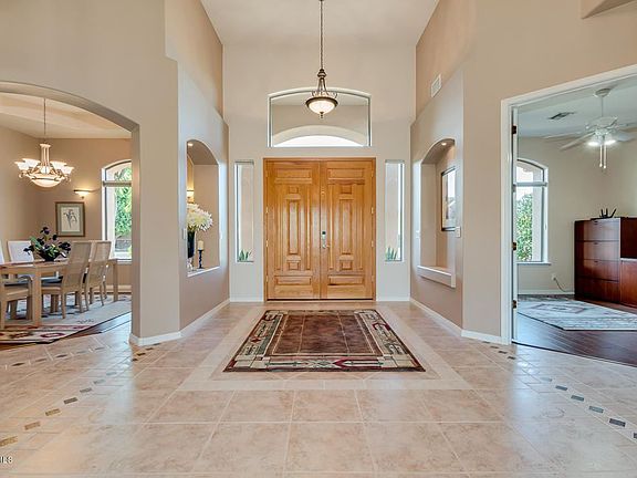 Gorgeous 3406 sf, single story custom home in the gated community of Avalon Groves.Grand entrance with circular driveway leading to the front of the home. Open concept of living and dining overlooking the resort style backyard. Located on a private, north/south, 3/4 acre lot surrounded by green space, citrus and desert flora. This 3 bedroom with office, 2.75 bath single story home with split floorplan offers flexible living space and phenomenal quality and design.Meticulously maintained with upgraded and refinished kitchen, bathrooms. Kitchen has been refinished with custom cabinetry, upgraded appliances, kitchen island, pantry and overlooks the backyard. Wet bar adjoins the family room and kitchen with refrigerator and seating. Family room with gas fireplace and media wall opens t
