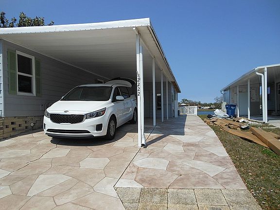 Pristine ! Is the only way to describe this gorgeous home, offering the best in Florida living. A little country with easy access to best Gulf beaches. Located in Country Lakes Villages II. This charming 55+ gated pet friendly community offers everything one might expect. Park amenities include heated pool, hot tub, pickleball court, putting greens and large club house with weekly activities and special events. and bands throughout the year. This home is absolutely move in ready with 1600sq ft of heated and cooled living space. This home features new main and master bath, kitchen, flooring with a new complete roof install Jan 2025. Inside utility room with washer and dryer office area desk. Eat in kitchen with separate dining room. Large Master bedroom with walk in closet. Master bath has a walk-in shower with double bowl vanity. Guest bath has a walk in shower. The guest bedroom has walk-in closet. The Bonus room and Patio area over look the back yard pond. Don't let this one get away!!