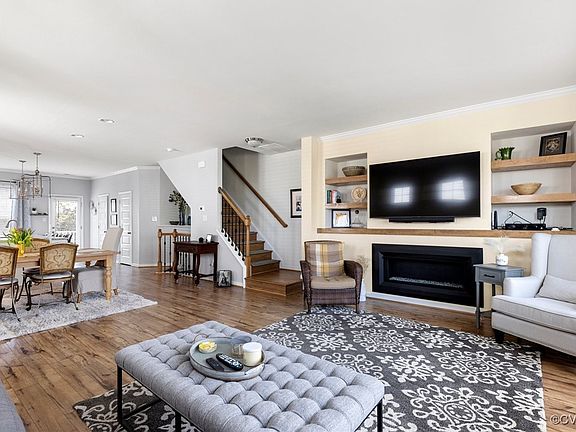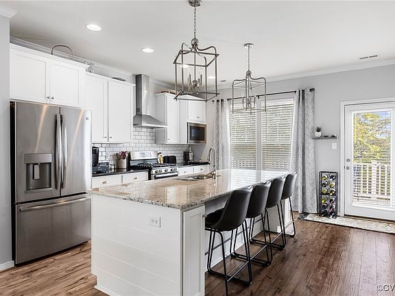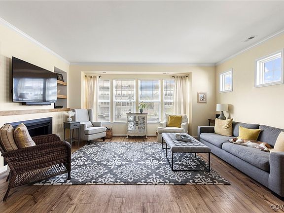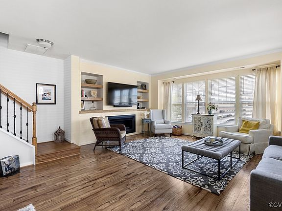 Fabulous Three-Story End Unit Townhome in Ridgefield Green with significant upgrades throughout! This beauty exudes curb-appeal with luscious landscaping and stone exterior with convenient sidewalks as well! Buyers will enjoy 3 BR (bottom room can be a bedroom or media room!), 3.5 BA, 2,146 square feet, gourmet kitchen and ample outdoor entertaining space! Be welcomed into a bright and airy foyer with transom windows. Satisfy all your storage needs in direct-entry 1-car garage. First floor bonus room offers adjacent full baths with walk-in shower and glass enclosure. A wonderful space for in-laws, or overnight guests. Also notice convenient access to rear patio. Upstairs, 2nd level offers spacious living areas. Expansive family room provides heaps of natural light, linear fireplace and modern built in bookshelves. Kitchen is a chef's dream showcasing large granite island with bar-seating, SS appliances, gas cooktop, tile backsplash and pantry. Dining area is ultra-cozy with tons of space to host family and friends, enjoy access to rear deck as well with private wooded views. Making way to third level, view a royal primary suite offering gorgeous decorative trey ceiling, carpet, huge walk-in closet and en suite bath with dual vanity, tile floors and walk-in shower with glass enclosure. Additional generous-sized bedroom offers huge walk-in closet and private bath with large vanity and tub/shower combo. Also found on this level, convenient laundry room is just across the hall! This dynamite home offers tons of convenience to local shops including Publix just around the corner, Short Pump Towne Center and major highways!