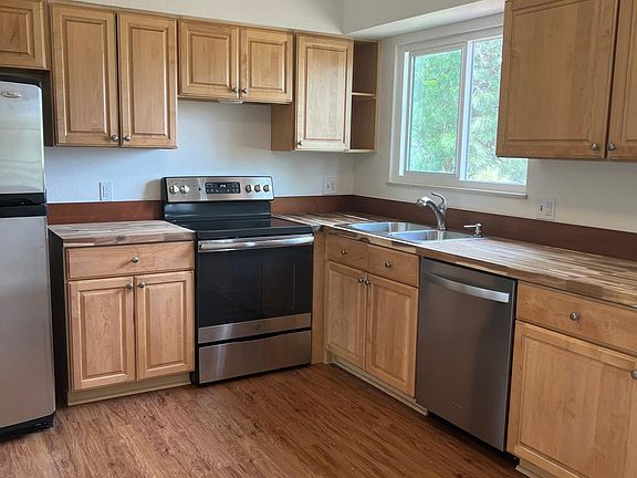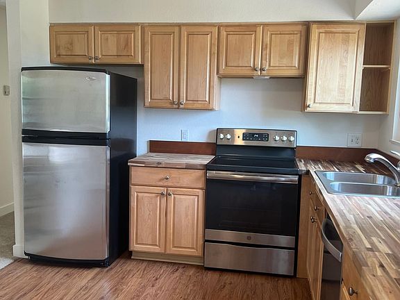 Completely remodeled 4 bedroom home! New flooring, interior paint, new two paneled doors, new 4" baseboards, updated kitchen cabinets with butcher block countertops and stainless steel appliances, and washer and dryer. Updated deck in backyard. Xeriscaped front yard for easy maintenance. Lower level fireplace in family room with 2 bedrooms that share a full bath. Upper level has 2 bedrooms that share a full bath and a living and dining area! Backs to open space! This property DOES NOT have Central Air or any cooling system. $50 application fee per adult. One year lease.