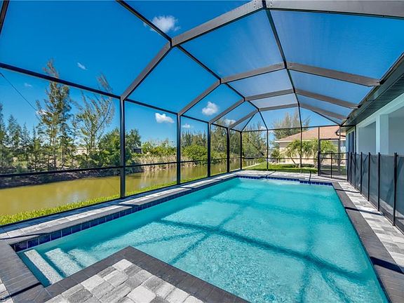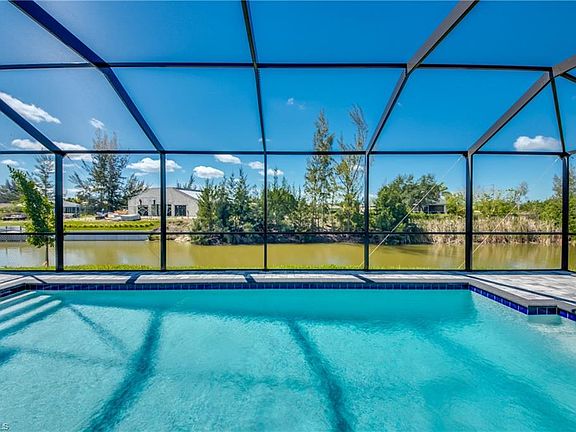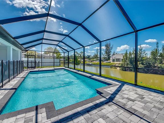 NEW CONSTRUCTION - TO BE COMPLETED END OF OCTOBER! This 4 Bedroom, 3 Bath, 2 Car Garage home comes with all the Bells and Whistles. Home is 2,010 sq ft under air with a total of 3,998 sq ft when you include your 1,402 sq ft lanai with an oversized pool and located on a freshwater canal! The Kitchen has been decked out with 42" All Wood Cabinets, Stainless Steel Appliances, Marble Quartzite Countertops with full heigh backsplash, and a huge Kitchen Island. Designer plank tile flooring installed throughout the whole home and bathrooms. This home has a Paver driveway, Paver pool deck, complete landscape package with sprinkler system and flora tan sod. The interior specs are 12' Ceiling in living area, 8' doors, 5 1/4" Baseboard with 3 1/4" Casings, Soffit lighting outside, Frameless Glass Shower Enclosure, Stand Alone tub in the master bath, Trey Ceilings in the living room and master bedroom, pendant lighting in the kitchen, pool bath and so much more. This home is located in the desirable SW section of Cape Coral and comes with a 1 year builder warranty