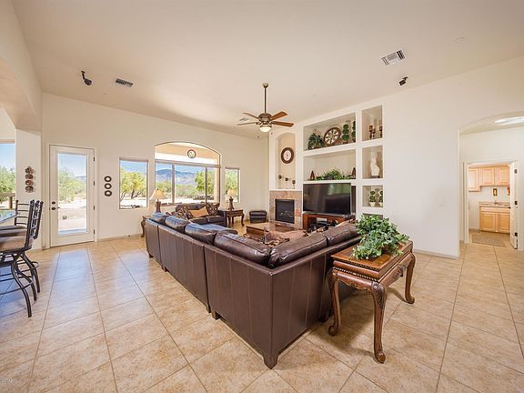 Gorgeous one owner meticulously maintained custom home on 2 acres w/ Stunning Catalina Mountain Views, Open Great Room Plan w/ Formal Dining. 14' and 10' ceilings incl Tray Ceilings. Minka lighted ceiling fans thruout, Heatilator Gas Fireplace, GE Profile Appliances, Granite counters, Travertine shower enclosures, Snail shell shower & Jacuzzi tub in Master Bath. Fire Sprinkler system (incl garage), with alarm, Wired for home security/alarm system/cameras, Cat7, landline phones, Surround sound. Water softener/treatment loop, and Oversized 3 car garage (780 sf) with built in shelving and work bench. Exterior features 580 sq ft covered patio facing Catalina Mtn views, gas fire pit, TV/Stereo speaker system, Gas BBQ stub, 5 fruit trees, low maintenance landscaping, w/2 drip systems.