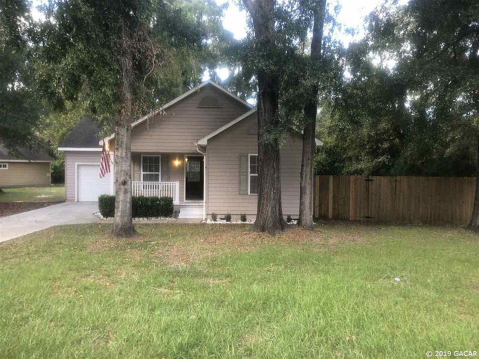 3/2 (Gondola Gardens High Springs) Beautiful corner lot home tucked away in small neighborhood in the country. Home welcomes you with a tiled entryway opening up to the living room with gorgeous real hardwood floors throughout the home. Arched accent doorway leads from living room into the kitchen featuring stainless steel Maytag appliances, oak cabinets, and a dining/serving bar seperating it from the dining room which boasts large windows allowing for plenty of natural sunlight. Master bedroom also includes wood flooring and large windows. Master bathroom features a granite vanity, tiled flooring, and tub/shower combination. Hall bathroom has tiled flooring, granite vanity, and tub/shower combination. Utility closet contains washer and dryer connections.
