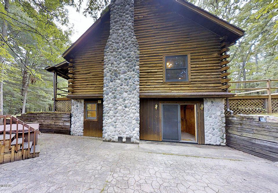 This is a full log home built in the side of the hill On 5 acres of woods And a very private location very near the lakes lots of public land And a very nice old building. The main floor features an open floor plan And a massive stone fireplace. This home is the quintessential definition of log home living.. Located just 30 min. north of Grand Rapids, is an easy drive down 131.