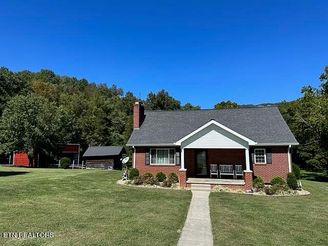 First time on the market, this beautiful brick home sitting on 47.350 (per tax records) with a flowing creek year around that comes from a freshwater spring on this property. This is a RARE FIND! This property has wooded land and cleared land. There is a metal machine shed, storage shed and a smoke house over 100 years old. This brick home has 3 bedrooms, 2 full bathrooms, the main bathroom has heated tile on the floor plus heated tile in the large walk-in shower with a built-in shower seat. This home is filled with beauty from the hardwood floors to the brick gas log fireplace. The kitchen extends into the dining room, the kitchen appliances stay with home. The basement is unfinished and has high ceilings, basement can be accessed from the main level and has a walk out basement door. there is a shower in the basement for easy clean up after working on the farm. The upstairs and two rooms and walk in closet. This home has double pane windows, heat pump was installed in 2022; plus, there is a wood burning stove in the basement that stays with home; security system, fiber optic internet available, city water, septic system was pumped in 2022, underground utilities, fire hydrant at edge of property; double pane windows in home; gorgeous views from the back deck and covered front porch, beautiful, manicured lawn, This is a must see!