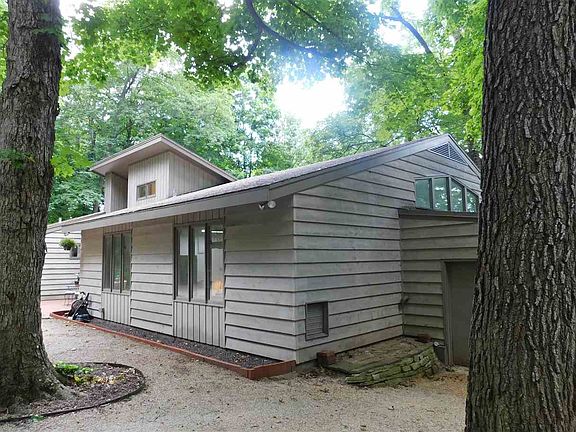 Don't miss this hidden treasure nestled on 4.6 wooded ACRES with seasonal river views. Unique home with yards of new flooring, updated kitchen (some new appliances) and bath, 2 fireplaces, vaulted ceilings, sun room and office loft. PLUS a 1,300 sq ft art studio, dream shop or your hearts desire. Acreage includes lot across road...parcel #01-01-12-300-012...taxes $1066.74 Nature important? This is your place!! Yard sculptures reserved. Square footage includes studio.
