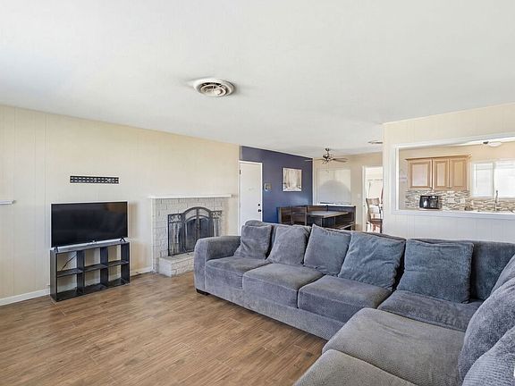 This inviting 3-bedroom, 2-bathroom home is ideally located in the heart of Apple Valley, California. The open concept kitchen features granite countertops, a stylish mosaic backsplash, a peninsula, with a breakfast nook, that flows seamlessly into the living room, which offers a cozy fireplace, and lots of natural lighting. Dark wood flooring runs throughout the home, enhancing its warm modern feel, and Just off the dining area is a generously sized bonus room. The property includes a large fenced-in lot two-car garage and a spacious driveway with ample room for RV parking, a backyard pergola with tons of potential to create an outdoor oasis.