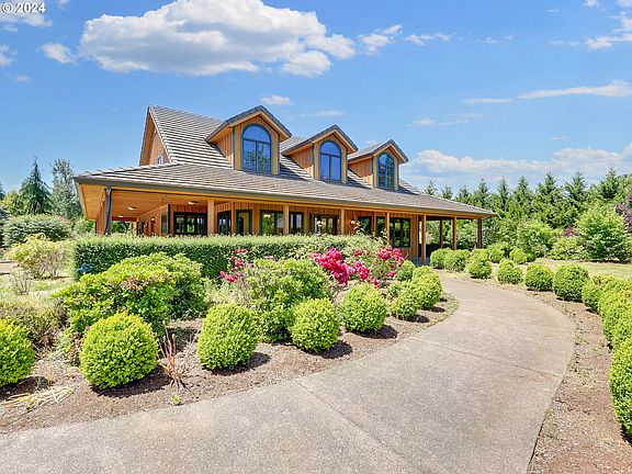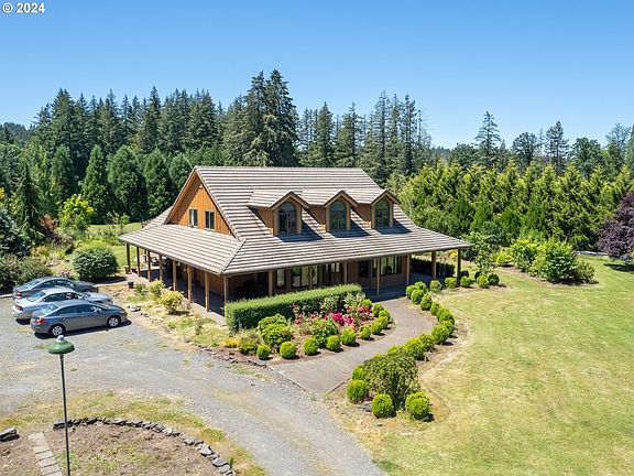 Open House Saturday June 29th 12-4pm. This stunning residence and property has a beautiful view of Mount Hood! The custom built home is 3619 sq ft and has 5 bedrooms and 2.5 bath. The primary bedroom is on the main level and has high vaulted ceiling and a walk in closet. Primary bath has a large shower and vanity. A formal living and dining area as well as a large family kitchen. A comfortable family room that has sliders that open up to the 2500 sq ft gorgeous wrap around covered patio area with exposed cenent finish great for outdoor living! 52x32 brand new shop that has it own septic (needs a pump) It is plumbed for a bathroom. 26x18 Barn/shop with a 26x10 addition, 26x10 woodshop all buildings are wired 220 and have lighting. 3500 gallon pond with water feature. 42x20 green houses. There are 2 wells are located on the property with 10 water hydrants throughout the property. The well for the home has a newer VFD system installed. Roof is concrete tile, large car pad for parking multiple cars and RV parking. There are several varieties of trees and plants including Sequioa, Cypress, etc. All of this beauty is located on 4.8 level acres and is all usable! Come experience this exceptional property!