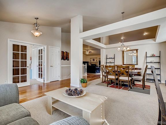 Gorgeous 5 bed, 5 bath well loved home backing to open space. Multi generational with separate basement entrance, two gas fireplaces, large open basement living area with wet bar and den/office plus two bedrooms, walk out to a 570 sq ft concrete patio and peaceful open space. Light, bright and open main level with 234 sq ft trex deck and covered front porch. Updated kitchen with double ovens, quartz counter tops and slate back splash. There are two bedrooms and a third office/bedroom with walk in closet. Great location on a quiet cul-de-sac close to Southlands Mall, E-470 and Saddle Rock Golf Club. You will not be disappointed for all this lovely home has to offer.